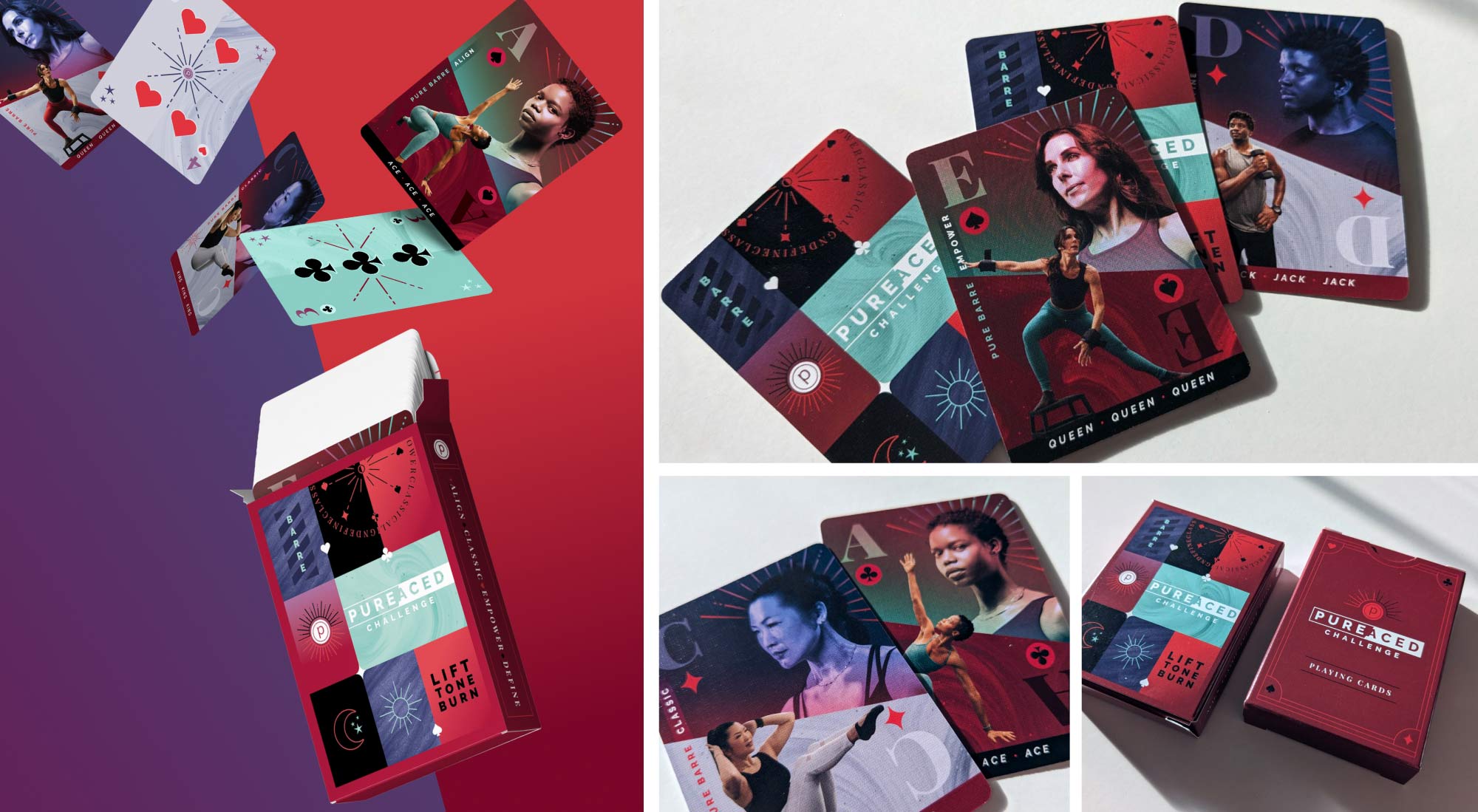 To make this challenge extra special, my team and I decided to create a custom 52 card deck using Pure Barre photography and the challenge colors. After two test prints to ensure print quality, we released the artwork on VistaPrint so all franchise partners could order and sell the cards in studio.